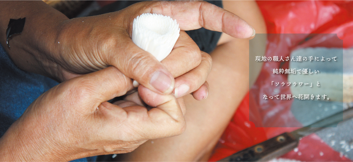 タイ王国原産の自然素材「ソラ」から生まれたナチュラルで優しい風合いの「ソラフラワー」で楽しむブランド。cazaroとの相性もぴったりです。